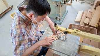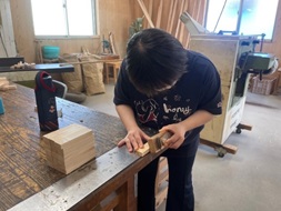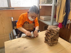ハートフルプラザ松山では主に木工製品の販売をしています。県内産の檜を使用して小物からベンチまで利用者の皆さんがそれぞれの役割りをこなし、心を込めてひとつひとつ丁寧に作っています。